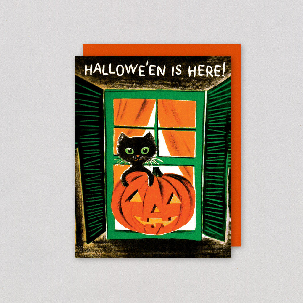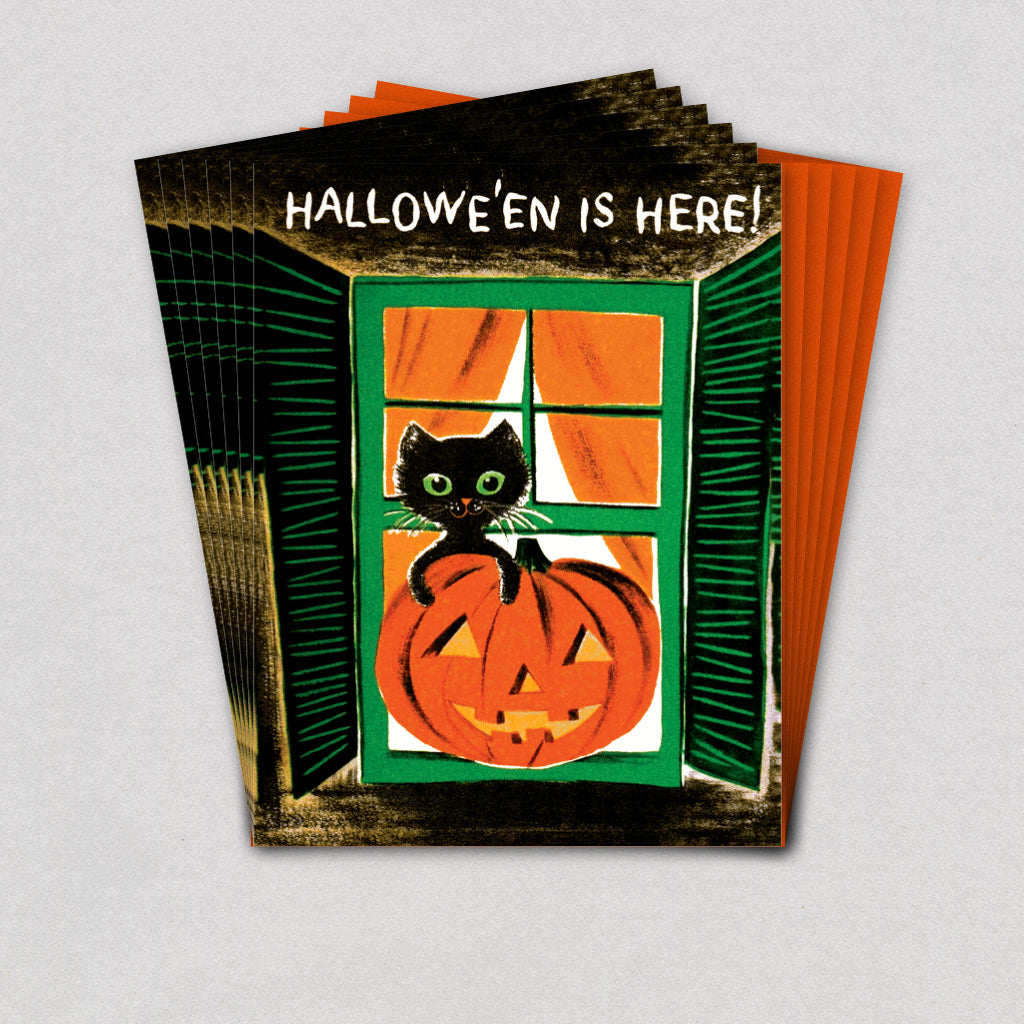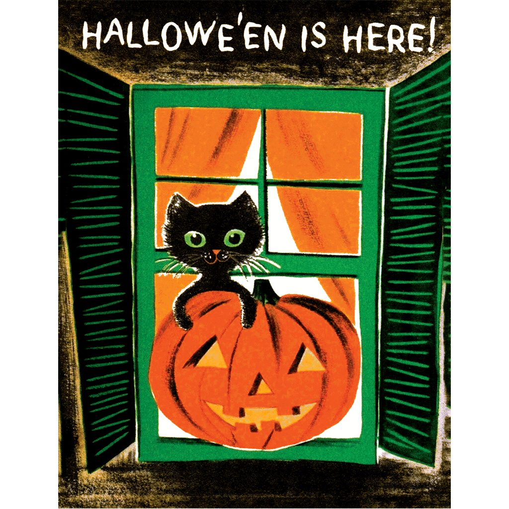 This mid-century reproduction retains its original, timeless design, and it arrives with a festive orange envelope to complete the holiday spirit. hare the spookiness of the season with this delightful card. See this image as a single card!