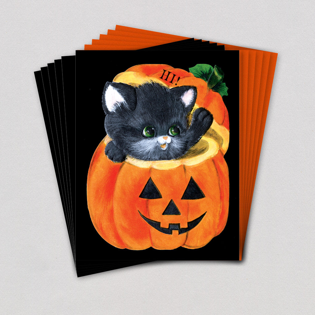 Kitten in Pumpkin - Boxed Halloween Cards