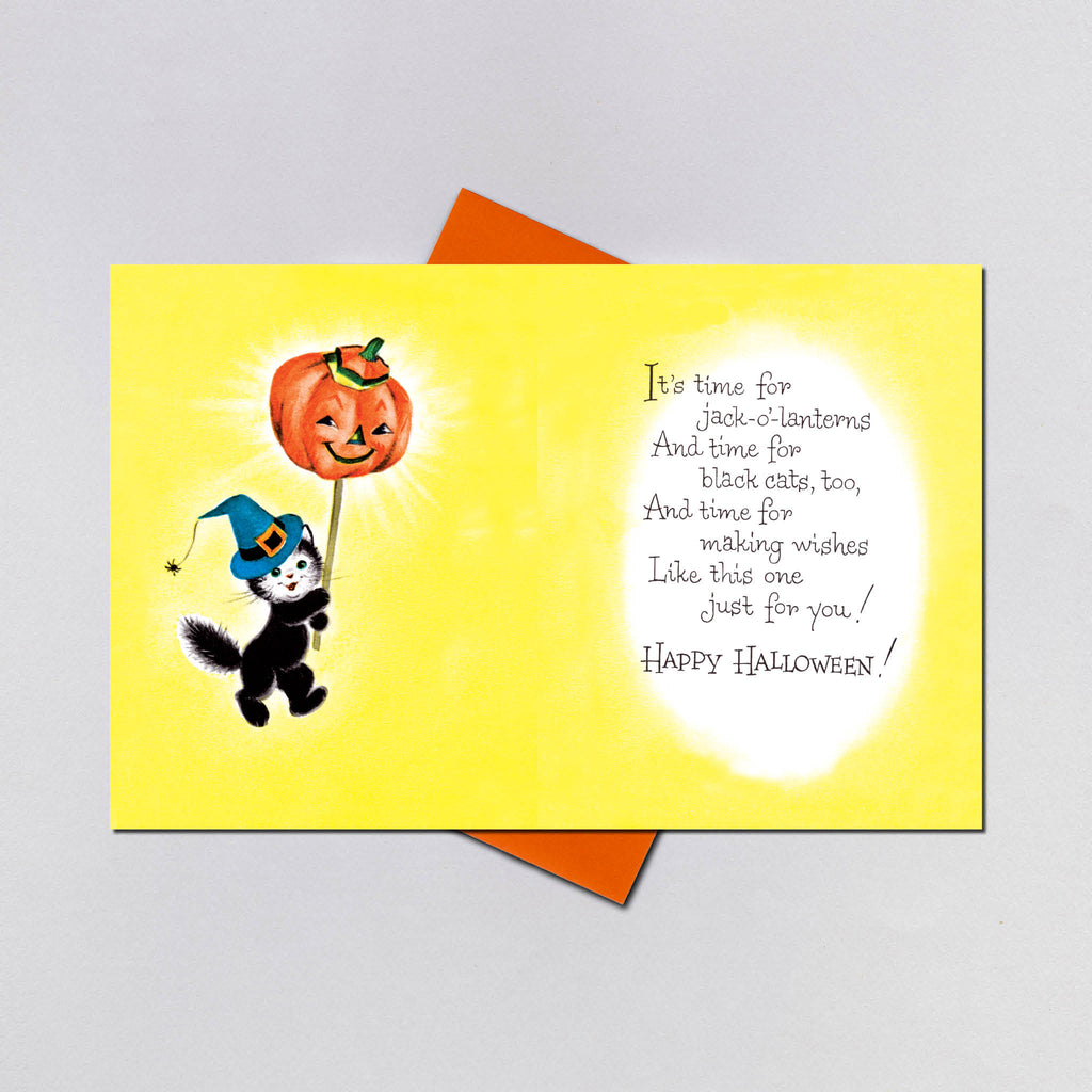 NSIDE GREETING: It's time for jack-o'-lanterns And time for black cats, too, And time for making wishes Like this one just for you! HAPPY HALLOWEEN!