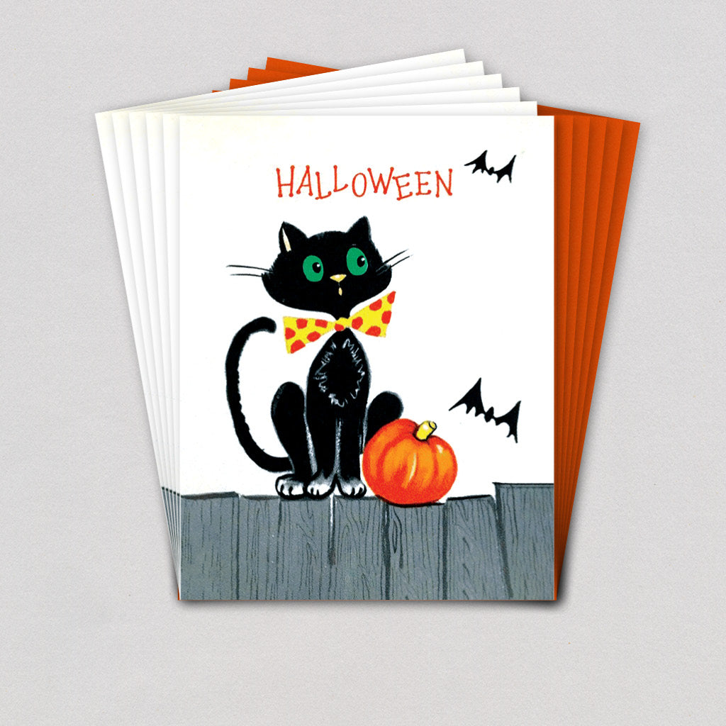 Black Cat on a Fence - Boxed Halloween Greeting Cards