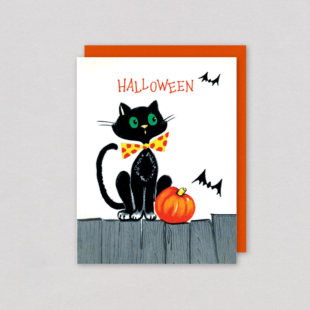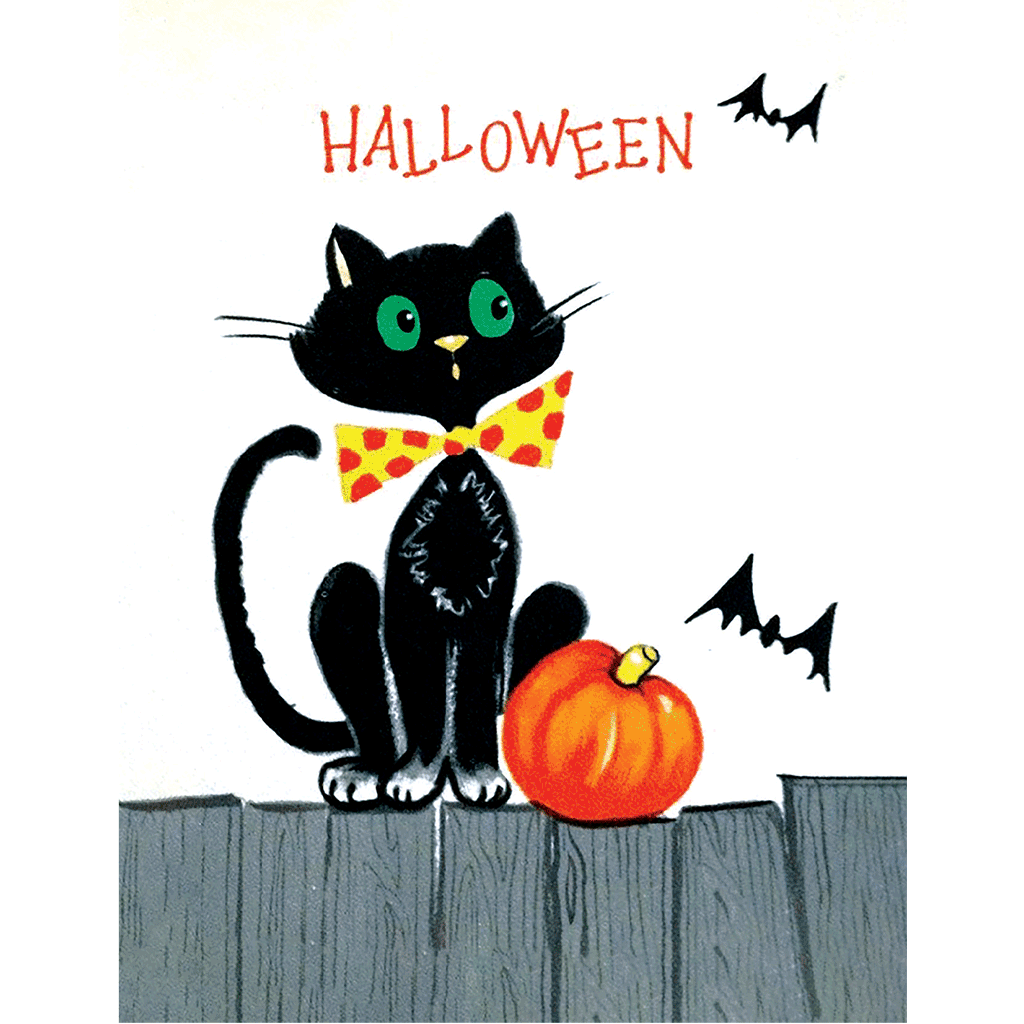 This mid-century reproduction retains its original, timeless design, and it arrives with a festive orange envelope to complete the holiday spirit. hare the spookiness of the season with this delightful card. See this image as a single card!