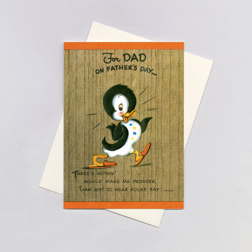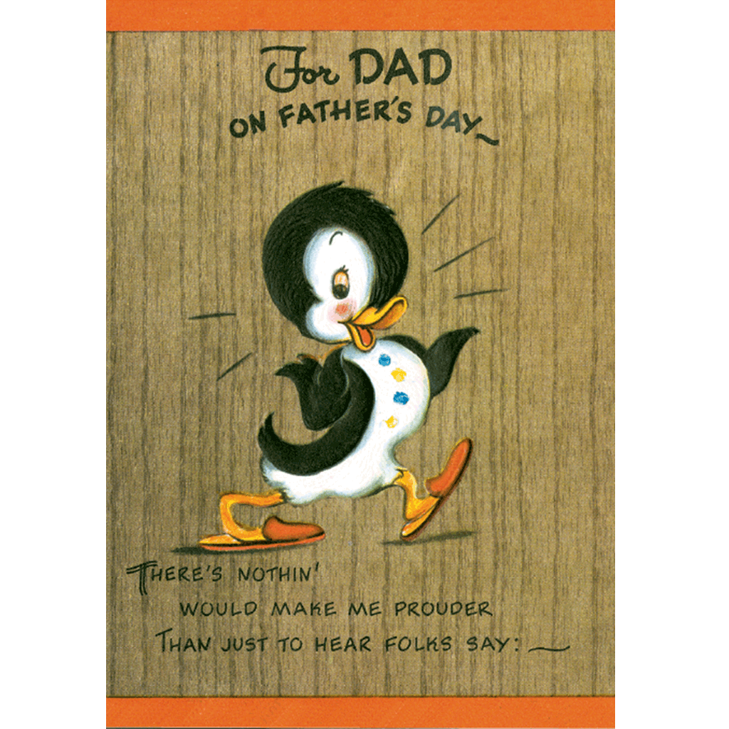 The loving sentiment of looking up to one’s father and seeking to be like him is playfully presented by this little penguin.
