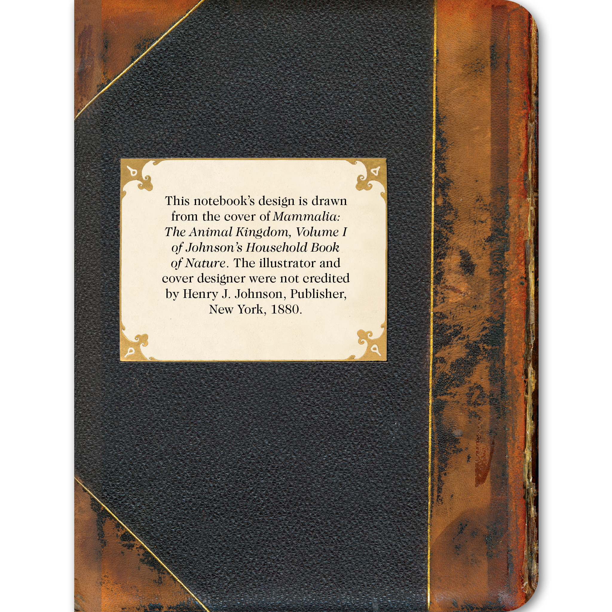 This vintage notebook’s design is drawn from the cover of Mammalia: The Animal Kingdom, Volume 1 Of Johnson’s Household Book Of Nature. The illustrator and cover designer were not credited by Henry J. Johnson, Publisher, New York, 1880.
