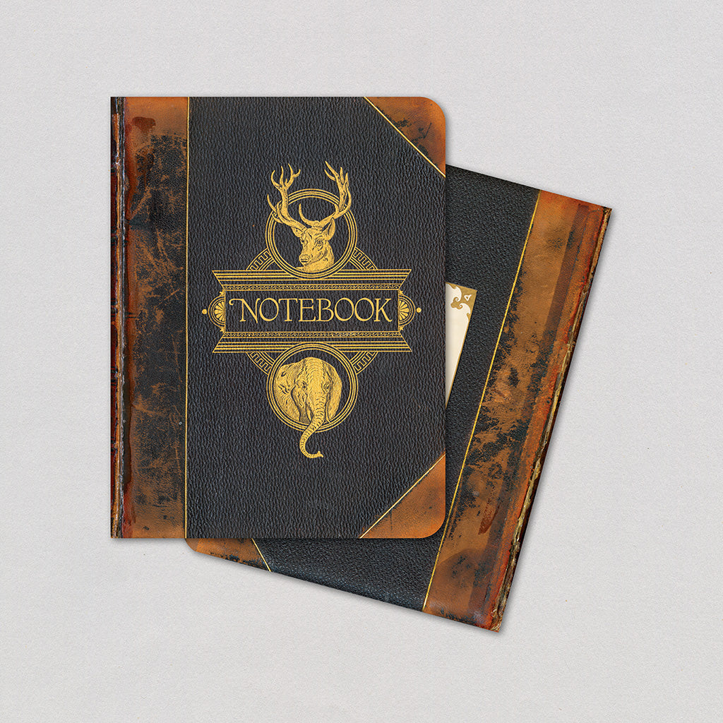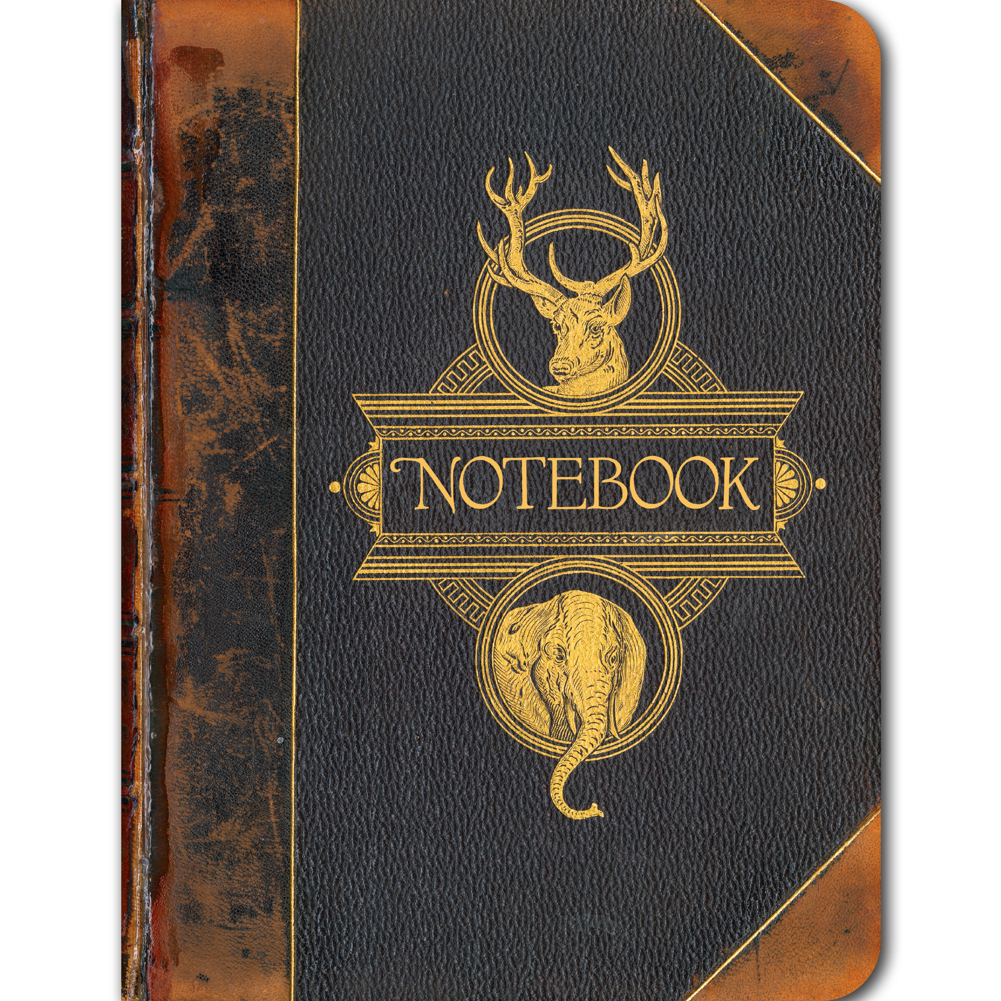 Animals on Brown Leather - Vintage Book Cover Notebook