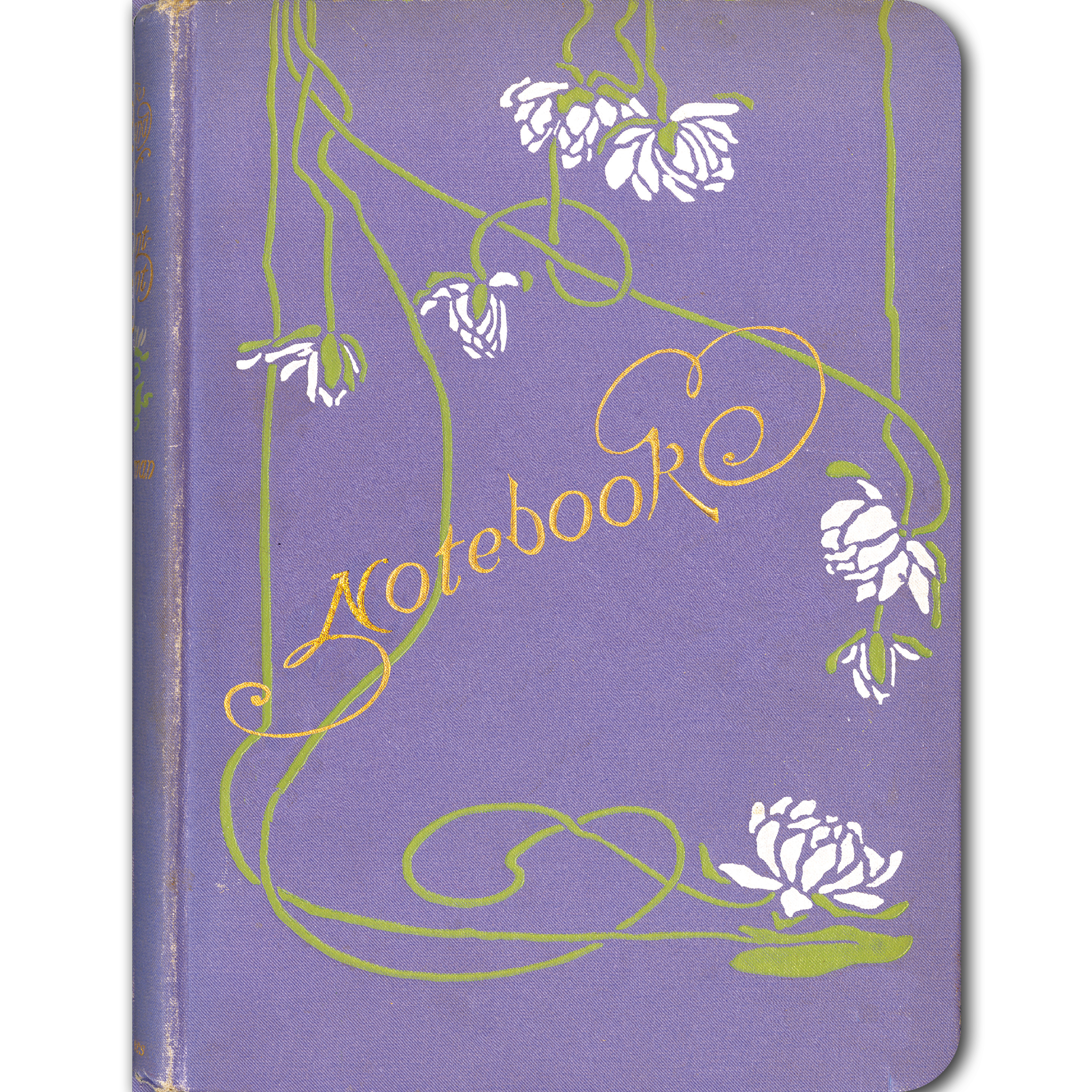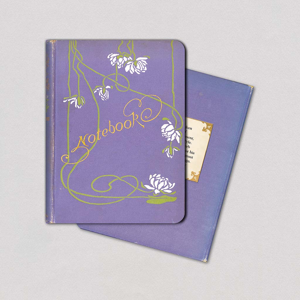 This vintage notebook’s design is taken from the cover of The Island Of Enchantment, illustrated by Howard Pyle. Howard Pyle was a superb designer, but this cover is not his style, so an unknown artist must have created this lovely design. The book was published by Harper & Brothers in 1905.