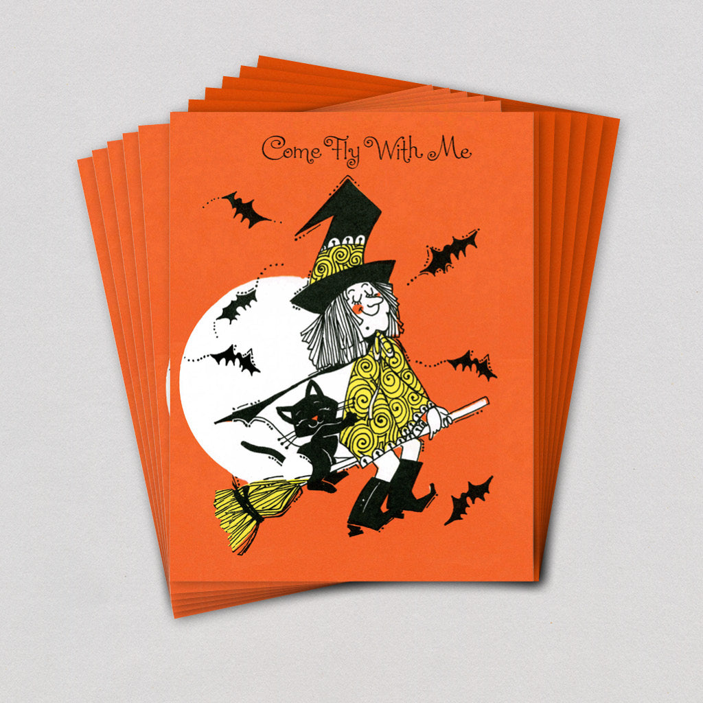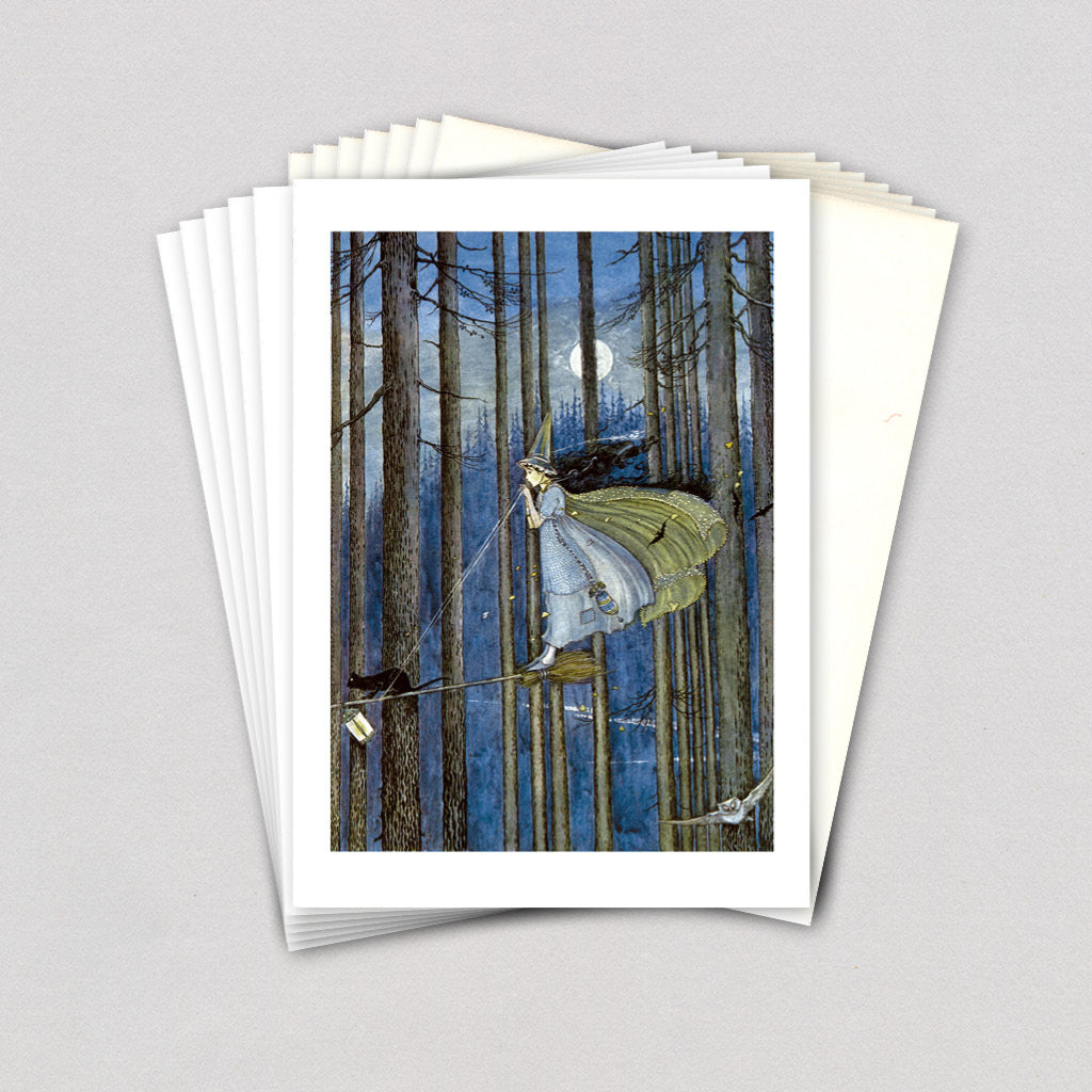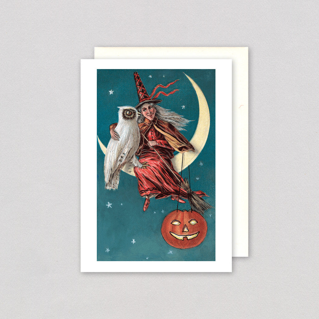 Girl Witch at a Campfire - Boxed Halloween Cards