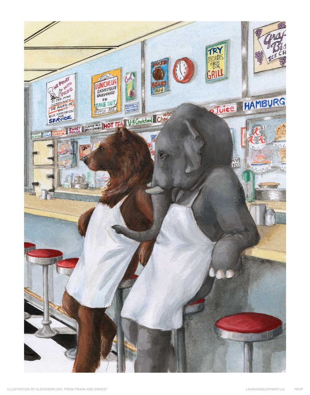 From the book Frank and Ernest by Alexandra Day, first published in 1988.