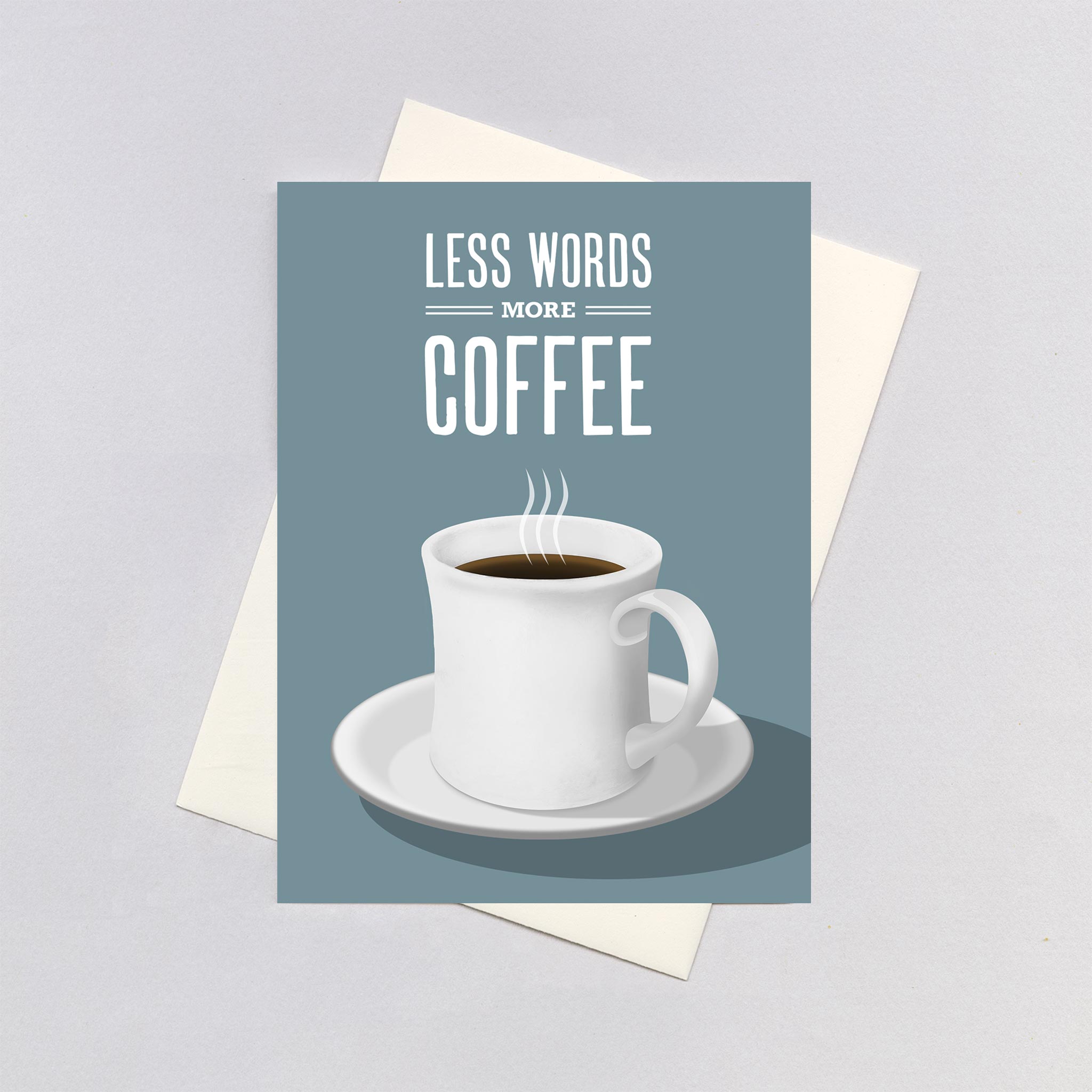 Less Words More Coffee - Coffee Addiction Greeting Card
