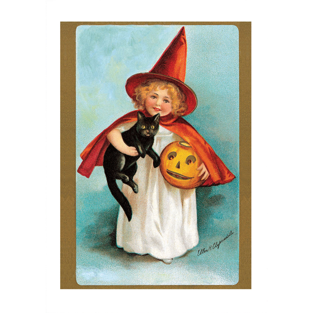 This enchanting witch, brought to life by Ellen Clapsaddle in a 1908 postcard, is one of her most beloved and enduring Halloween creations. Over the past century, it has seen countless reproductions in various iterations, making one wonder how many mailboxes it has graced with its whimsical presence. It is a true testament to the timeless charm of her artistry! See it in our Halloween Postcard Box AND Happy Halloween Art Print Portfolio!