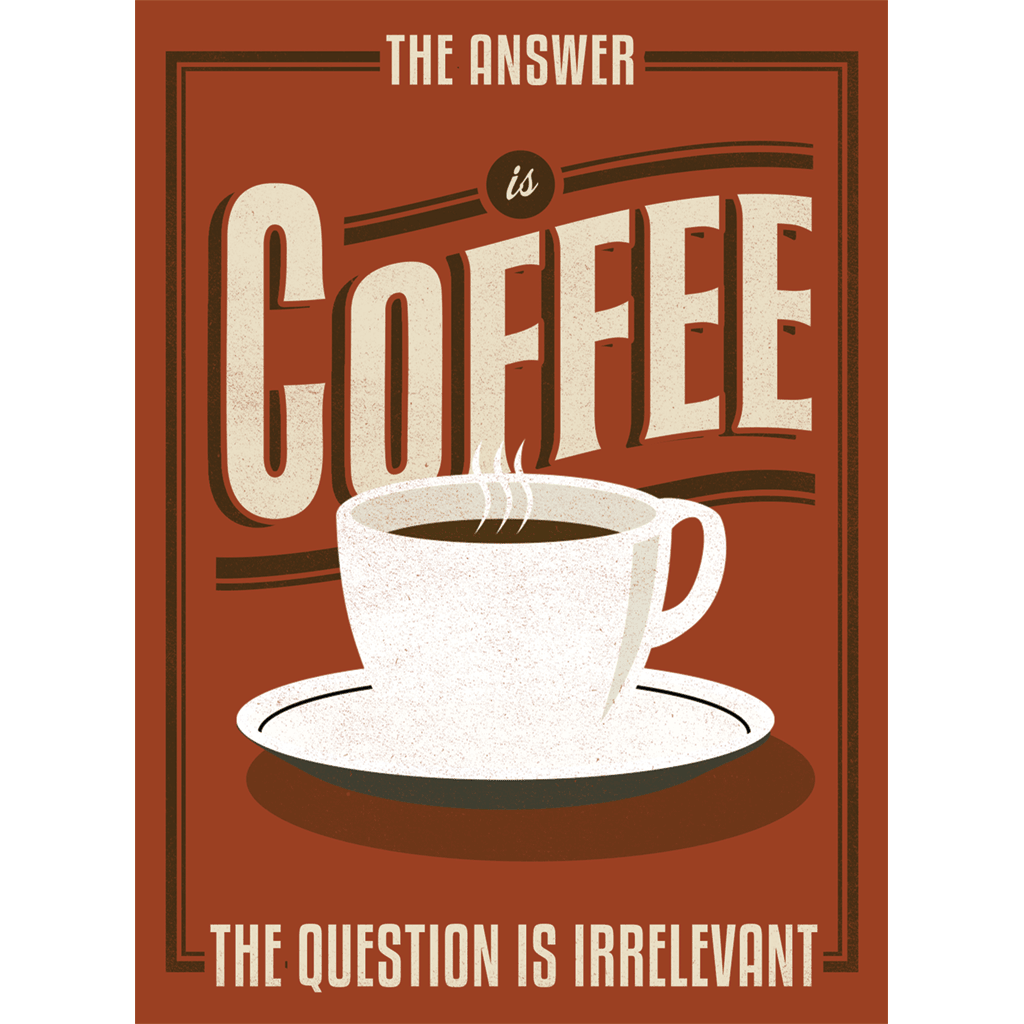 This card delivers coffee wisdom in its purest form. This card speaks to true believers who know that whatever the dilemma, coffee comes first. The retro design uses deep browns and rich creams reminiscent of classic diners where coffee flows continuously. Bold typography makes the message clear: no matter what you are facing, coffee is the solution.